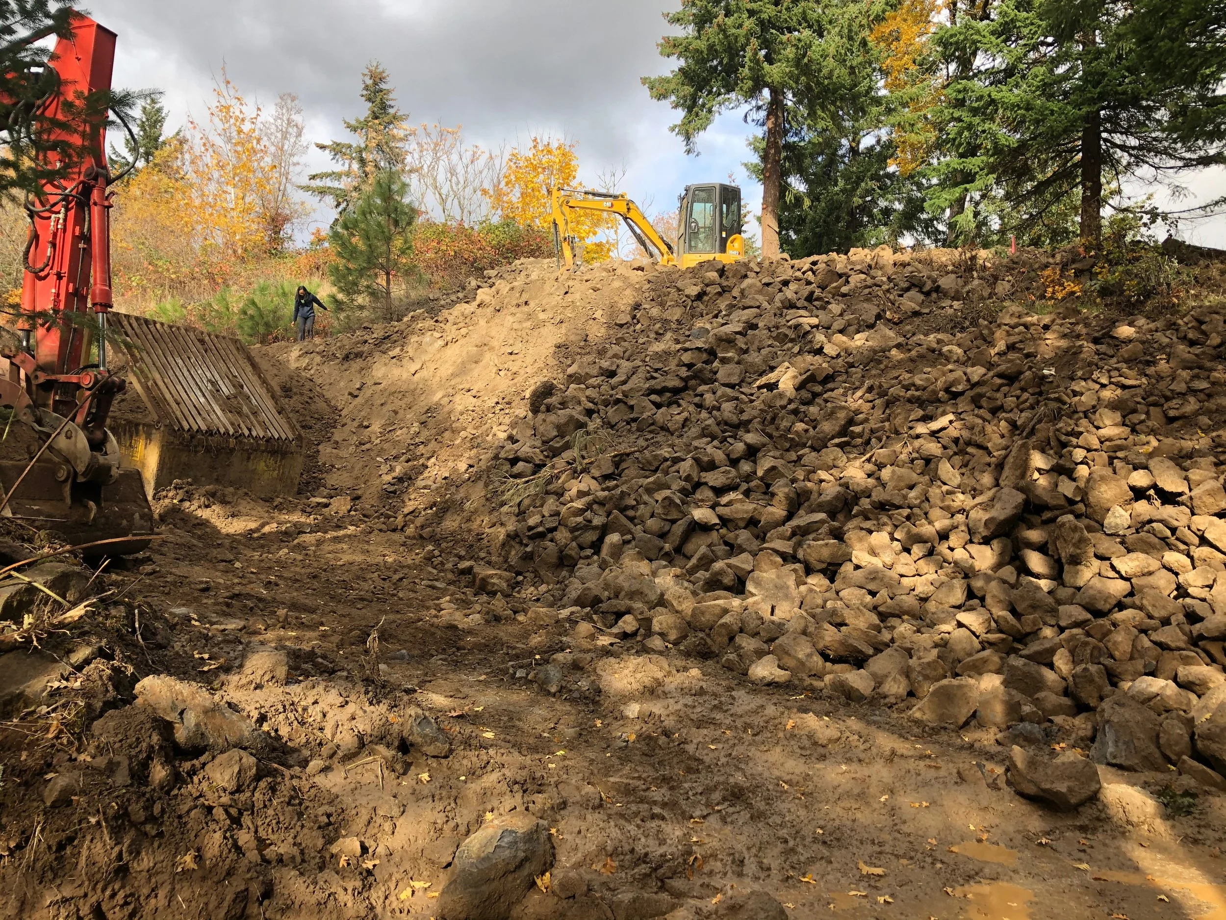 Both the city and county where we’re building have established building codes that specifically address the challenges of construction on steep terrain to protect both the natural environment and the safety of buildings and their occupants. The local codes are based on the IBC, with specific amendments for the region. Steep slopes are designated as "geologically hazardous areas," which trigger specific review and permitting processes (that are always fun to navigate, as many of you likely know). For many projects on steep slopes, the involvement of a licensed engineer and/or architect is mandatory, who will ultimately be responsible for designing a foundation system that accounts for the site-specific geotechnical findings. Permit applications must be accompanied by comprehensive site plans that detail a project's grading, drainage, and erosion control measures. These plans must incorporate the recommendations from a geotechnical report. And lastly, there are also local design requirements for seismic Zone D-1, a frost line depth of 18 inches, and significant wind loads.